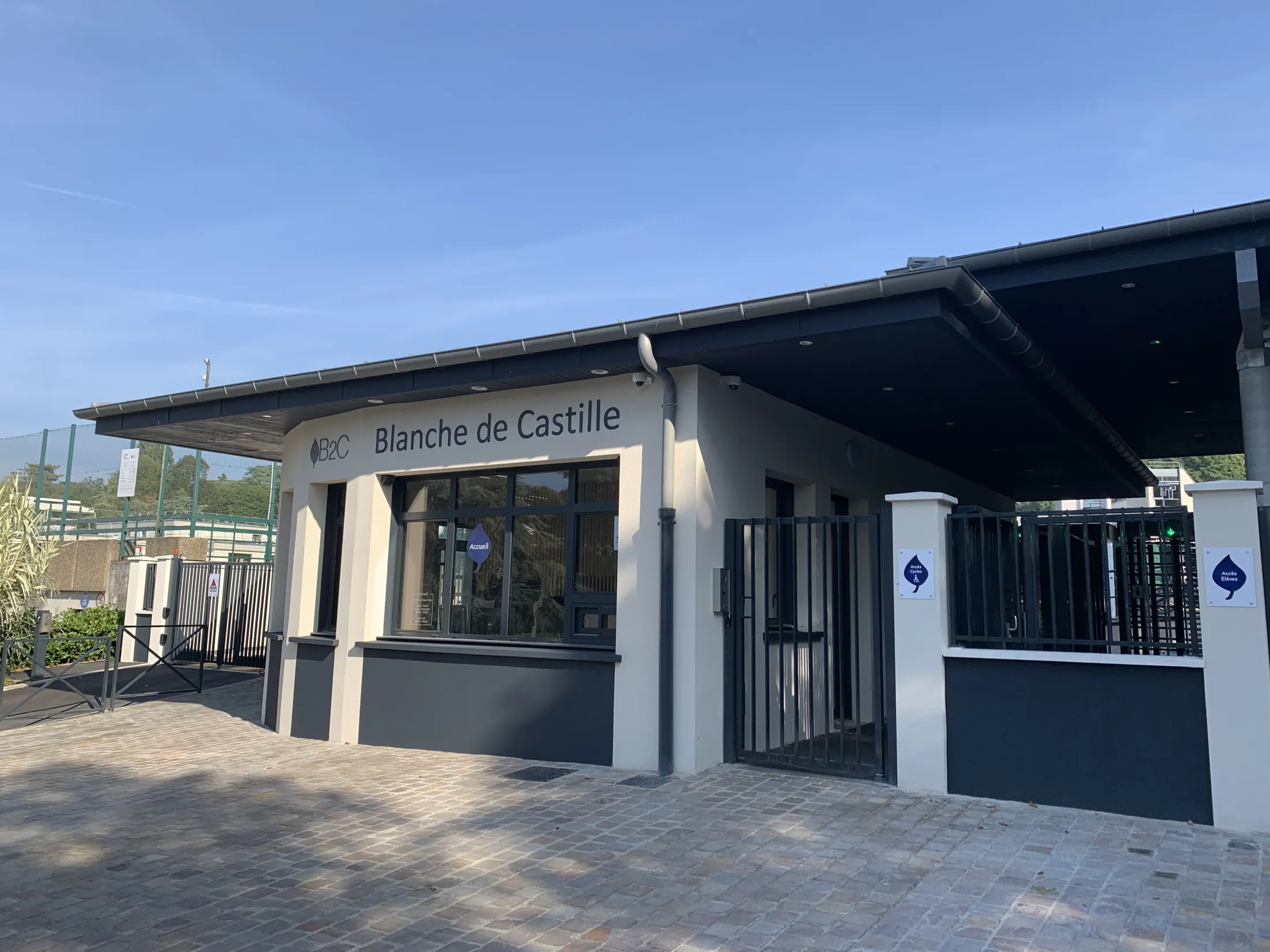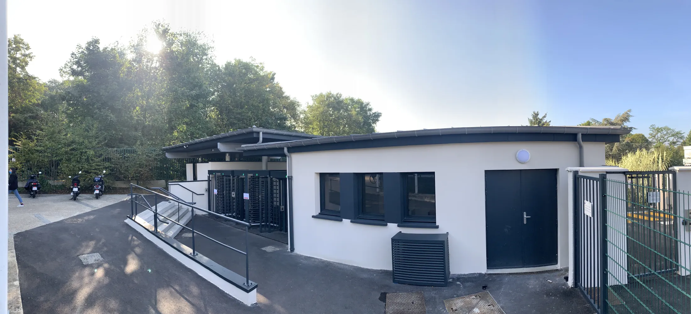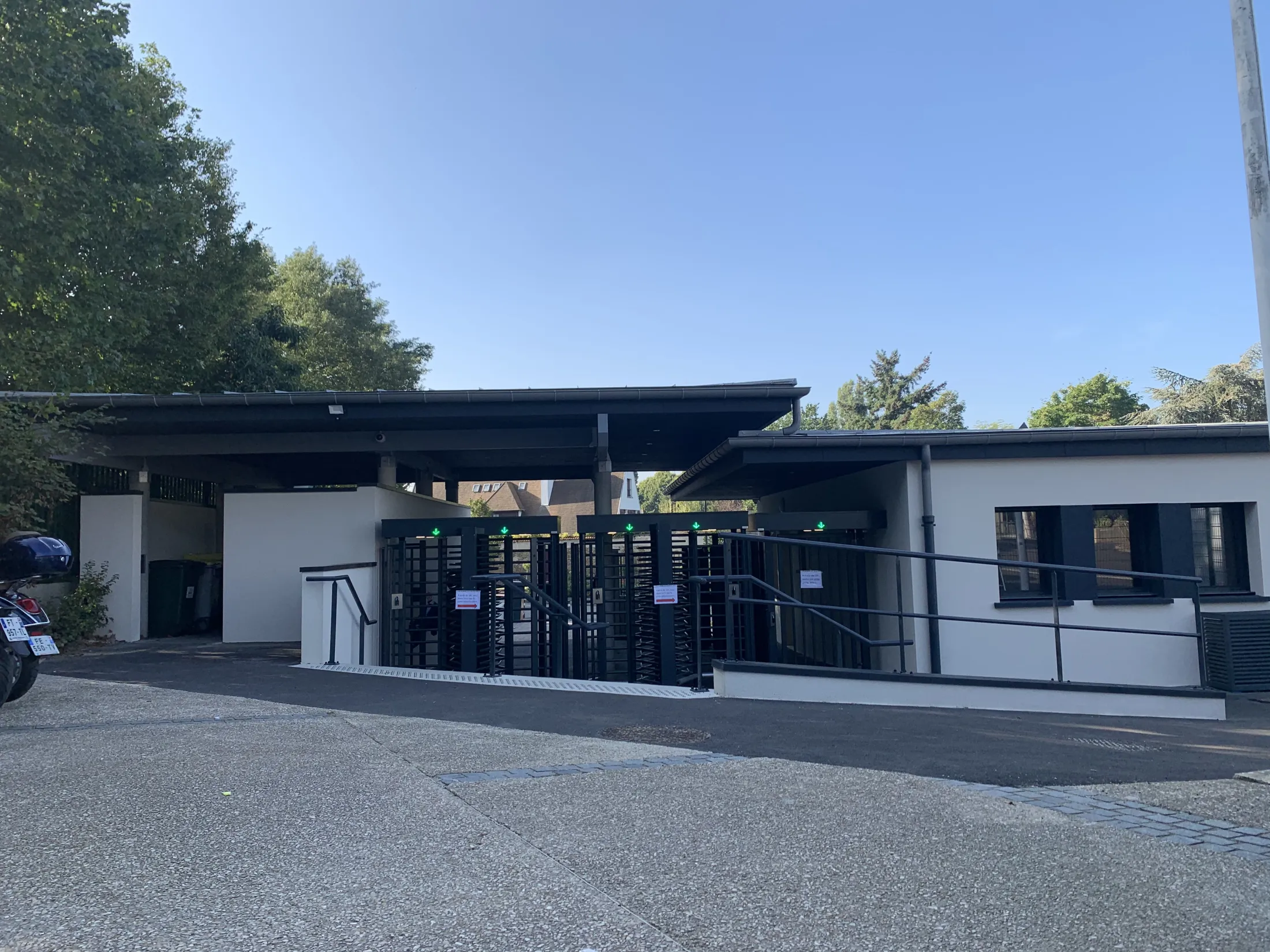 Construction d’un pavillon d’accueil. Le bâtiment se compose d’un espace d’accueil, un local technique, un local poubelle et un passage couvert avec des tourniquets pour faire rentrer en toute sécurité les 2400 étudiants de 1’établissement.