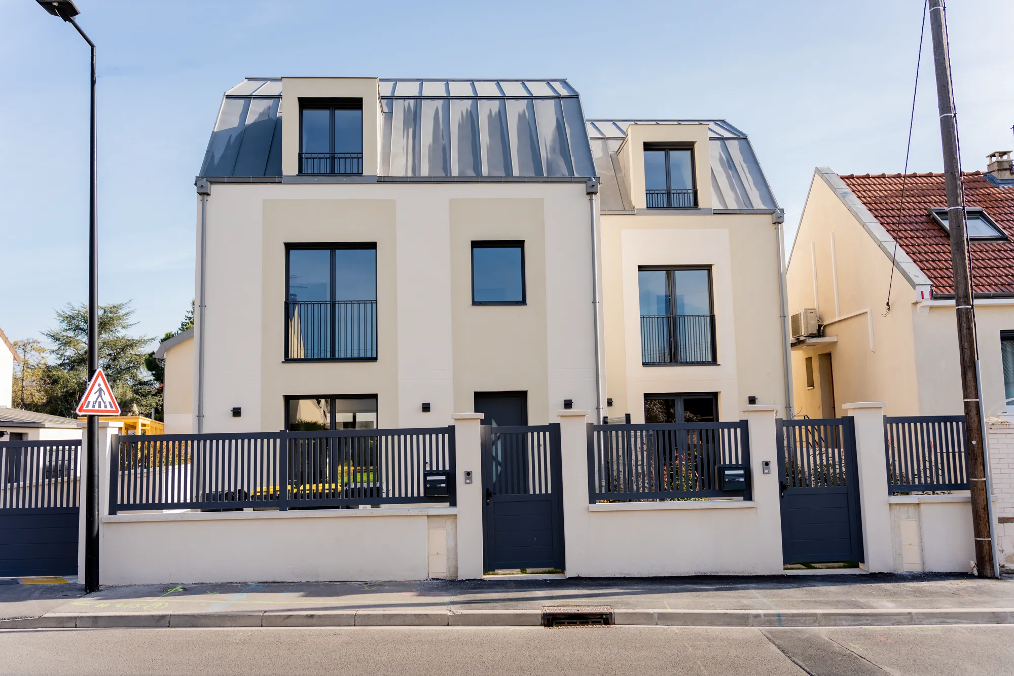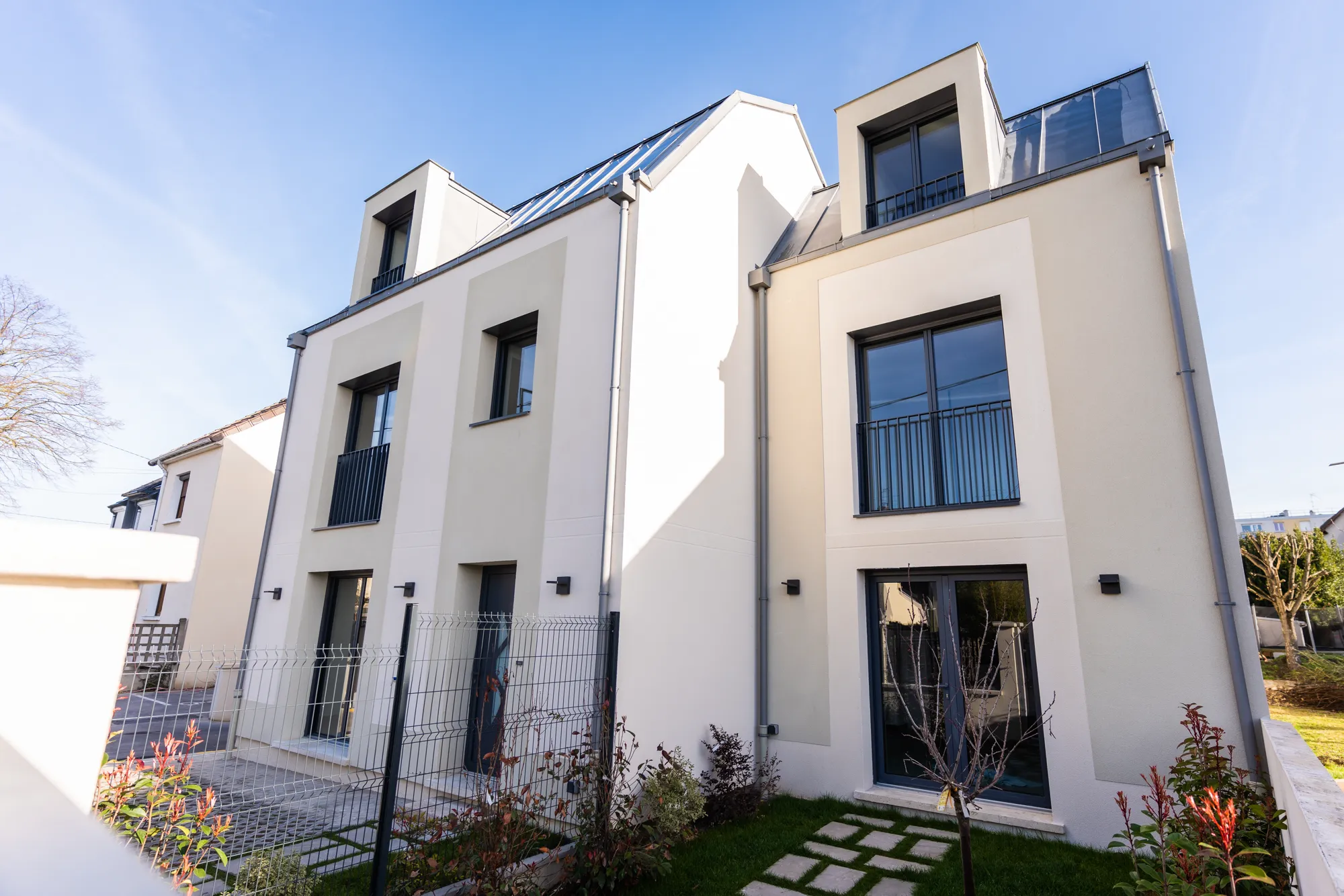 Surélévation et division d’une maison à Sartrouville, transformée en deux habitations unifamiliales, avec création de niveaux supplémentaires et d’un parking en sous-sol, malgré de fortes contraintes administratives et techniques.